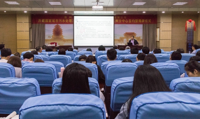 3月28日上午,中国工程物理研究员宋宝增应邀做客我校东江大讲堂,做了“关于膜技术在水中的处理”的专题讲座。参加国家城市污水处理及资源化工程技术研究中心惠州分中心签约、揭牌仪式的相关领导及人员,学校部分师生聆听了讲座,校长彭永宏主持讲座。